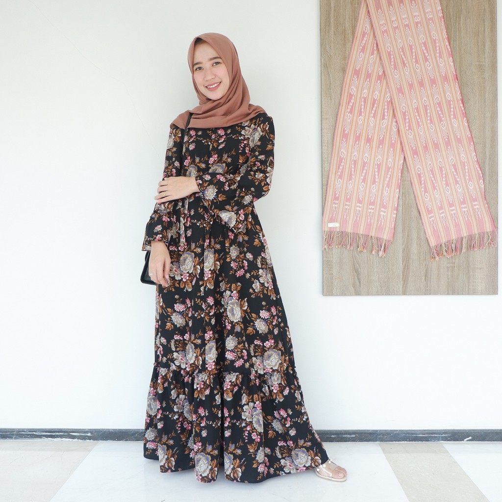 25+ Inspirasi Keren Model Gamis Motif Bunga Simple Elegan